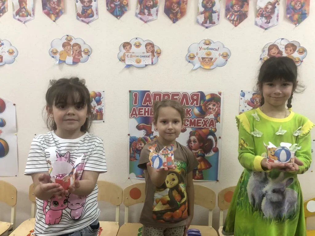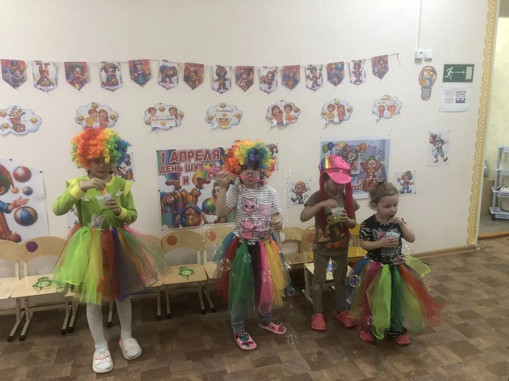 Воспитатель подготовила для детей интересные задания и игры, связанные с традицией первого апреля. Ребята с удовольствием участвовали в конкурсах, пускали мыльные пузыри, а какие забавные получились воздушные шарики и веселые клоуны.